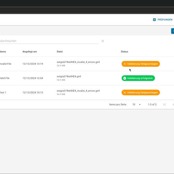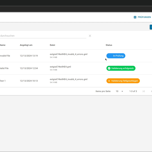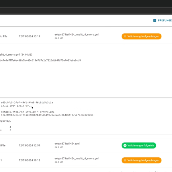 Validation: These checks ensure that geodata complies with the prescribed standards, thus enabling correct data processing and interoperability between different systems. From validating XML syntax to checking specific technical content, the application covers all necessary validation aspects and provides understandable error messages.